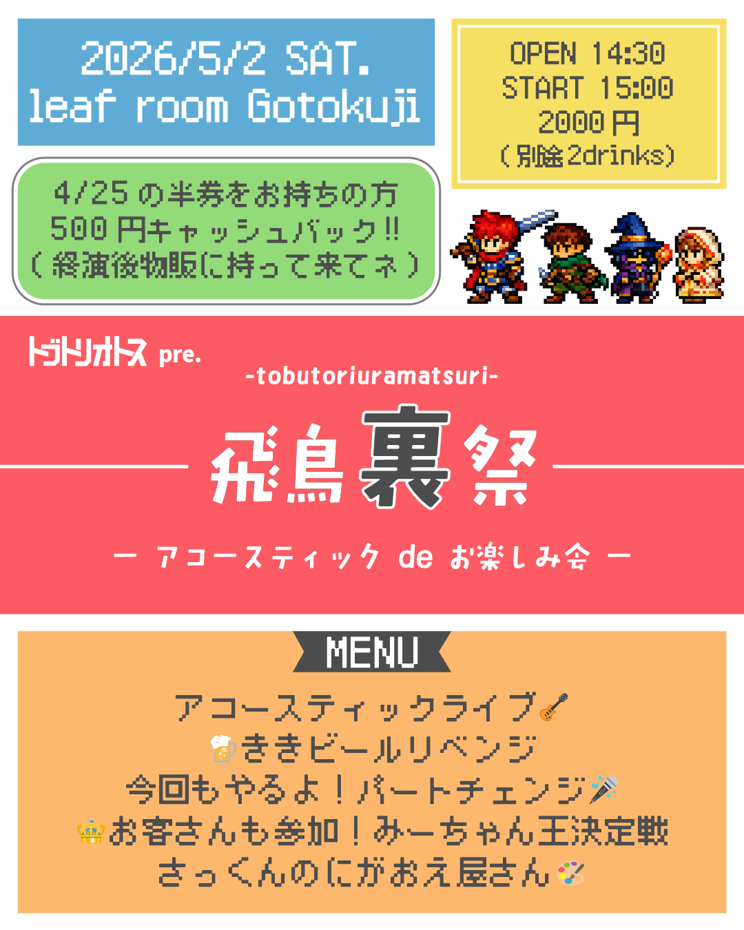 トブトリオトス presents 「飛鳥裏祭!! 〜アコースティック de お楽しみ会〜」