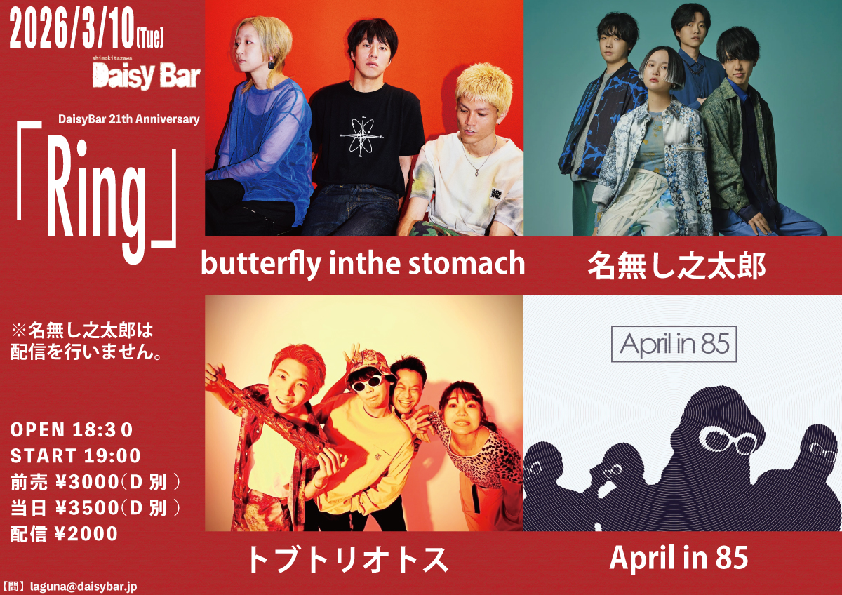 前売 ¥3000 / 当日 ¥3500 (各別途1drink) // 配信 ¥2000